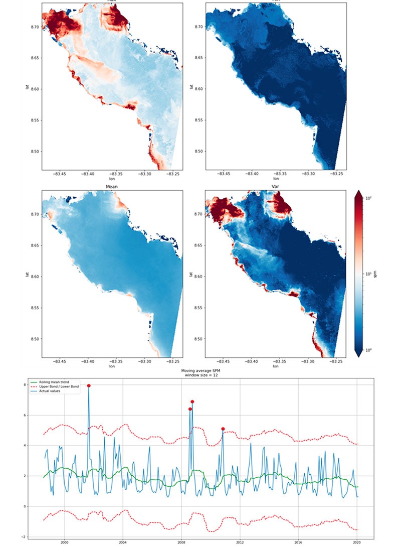 Both optical and radar remote sensing methods provide data at very large scales globally. We can map, analyse, and monitor several environmental indicators. (e.g. water quality, water temperature, bathymetry, land cover, and land use)